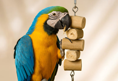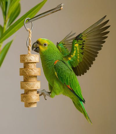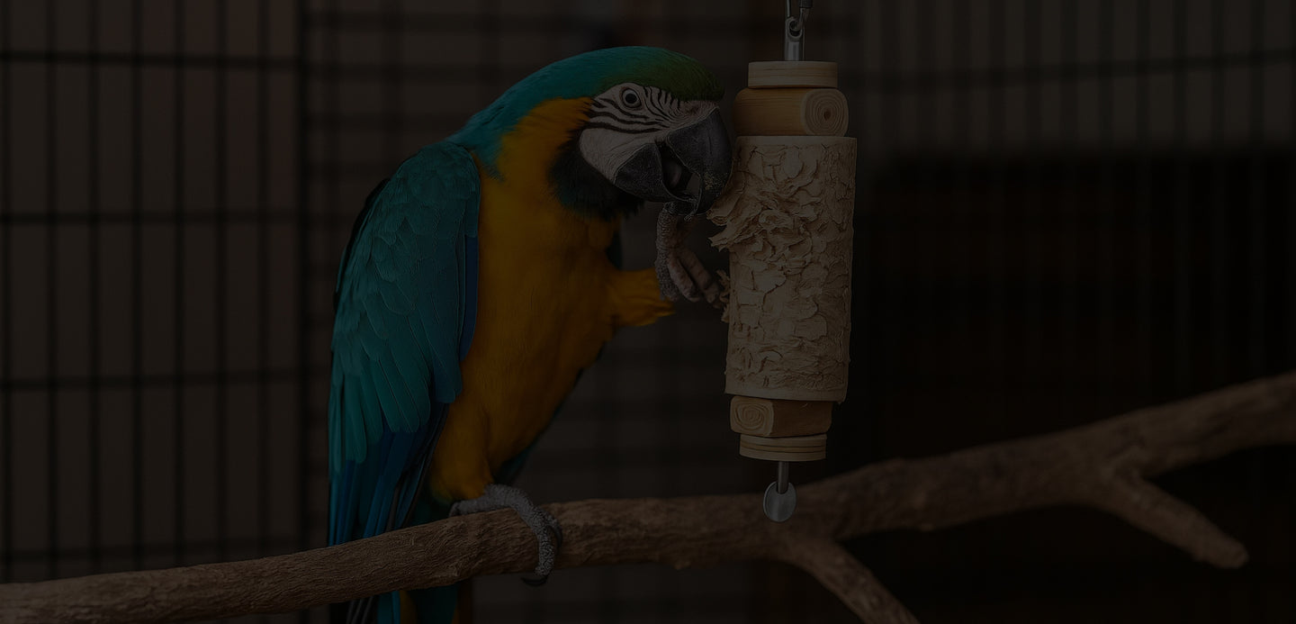 Our designs channel natural behaviors-foraging, shredding, chewing, preening, climbing-shown to reduce boredom and stress while supporting beak conditioning and fine-motor skills. We publish care & retire guidelines for each toy and recommend rotation every 1-2 weeks to keep interest high